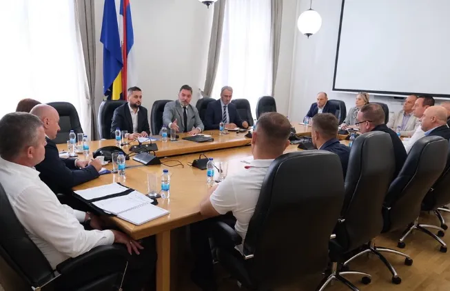 Košarac je danas u Sarajevu organizovao koordinacioni sastanak sa predstavnicima Konzorcijuma "Logistika BiH", Uprave za indirektno oporezivanje BiH, Kancelarije za veterinarstvo BiH i nadležnih inspekcijski organa iz Republike Srpske, Federacije BiH i Brčko Distrikta o konkretnim modelima rješavanja problema i hitnim mjerama nadležnih institucija koje će doprinijeti stabilizaciji uslova rada za domaće prevoznike.