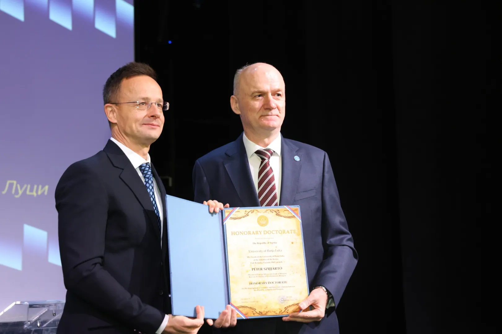 Ministru inostranih poslova Mađarske Peteru Szijjartu uručen je počasni doktorat Univerziteta u Banjaluci.