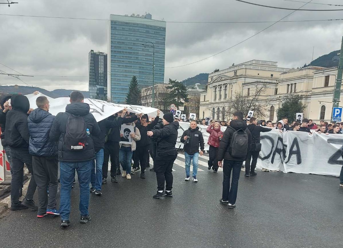 Ispred Zemljaskog muzeja BiH počelo je mirno okupljanje i odavanje počasti prerano preminulom mladiću.