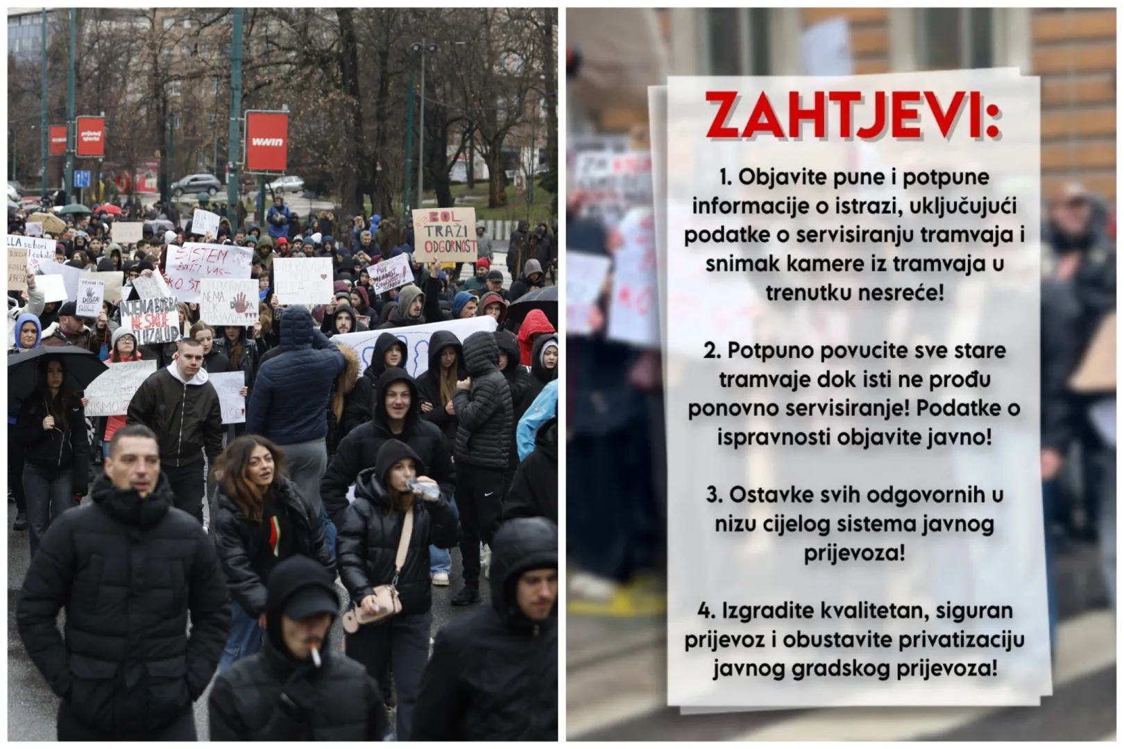 Građani Sarajeva i danas bi se trebali okupiti na protestu u 12 sati ispred Zemaljskog muzeja, četvrti dan zaredom. Podsjećamo, protesti se održavaju nakon što je u srijedu, na tramvajskoj stanici, kada je tramvaj izletio sa šina, mladi Erdoan Marković izgubio život.