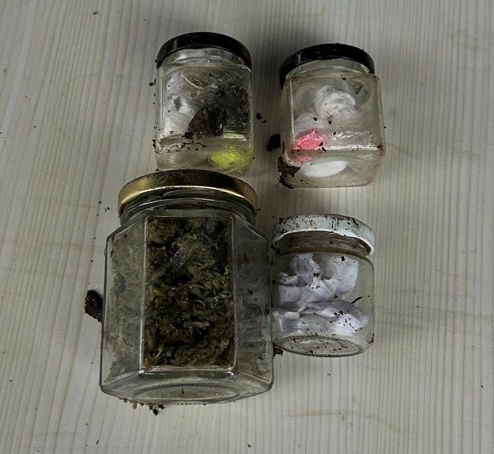 "Tokom pretresa, pronađeni su i privremeno oduzeti predmeti koji se dovode u vezu sa krivičnim djelom Neovlaštena proizvodnja i stavljanje u promet opojnih droga, i to: određena količina bijele i biljne materije koja svojim izgledom asocira na opojnu drogu (upakovanih u više staklenih tegli i pvc. pakovanja), grumeni smeđe boje koji svojim izgledom asociraju na opojnu drogu, dvije digitalne vage za precizno mjerenje, drobilica sa tragovima biljne materije koja svojim izgledom asocira na opojnu drogu, mobilni telefon i drugi predmeti", saopšteno je iz MUP-a TK.