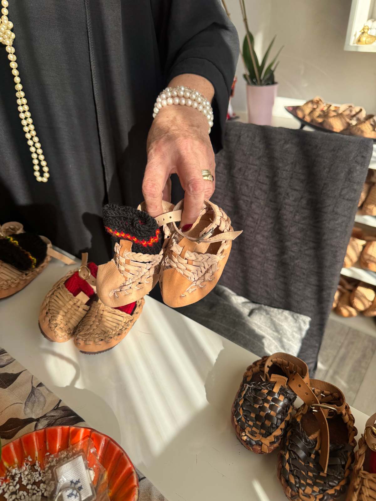 "Ovo su opanci od kengurove kože koje sam ja uradila čovjeku koji je išao na vjenčanje u Indiju, da bude u našoj nošnji u tim crnim opancima jer oni svi imaju crne opanke. Od kengurove kože, jeste, od nje se prave NIKE patike i savršena je za rad", navodi Čavlović Jalić.