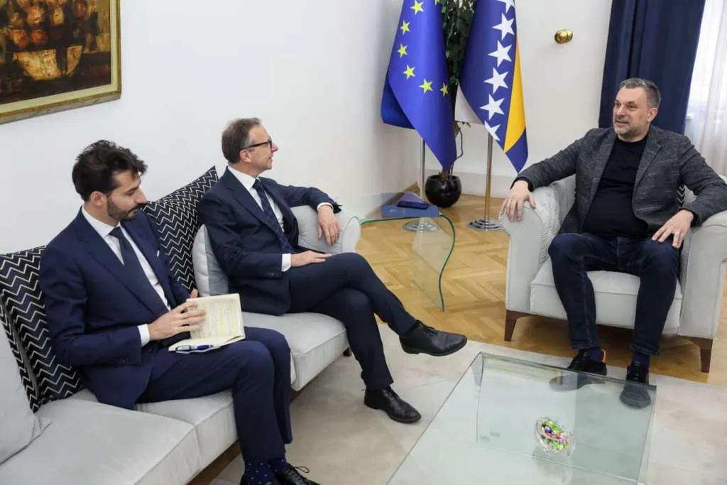Ministar vanjskih poslova Bosne i Hercegovine Elmedin Konaković sastao se danas u Sarajevu s političkim direktorom za Zapadni Balkan u Ministarstvu vanjskih poslova i međunarodne saradnje Republike Italije Thomasom Botziosom, pri čemu je potvrđena važnost bliskog i konstruktivnog dijaloga i naglašeno da su susreti na visokom nivou u proteklom periodu dodatno učvrstili povjerenje i kontinuitet saradnje između dvije zemlje.
