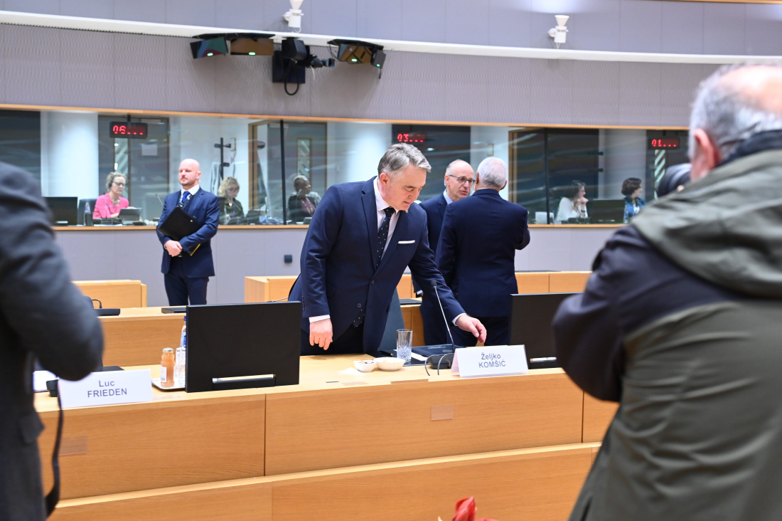 Komšića su u zgradi Evropskog vijeća dočekali predsjednik Evropskog vijeća Antonio Costa i predsjednica Evropske komisije Ursula von der Leyen, s kojima je kratko razgovarao prije početka samita.