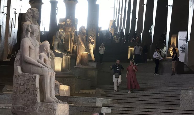 Posjetioci će ulaziti u muzej kroz Veliku dvoranu i Veliko stepenište, ogromne prostore u kojima se nalaze visoki hijeroglifski stubovi i kolosalne statue faraona.