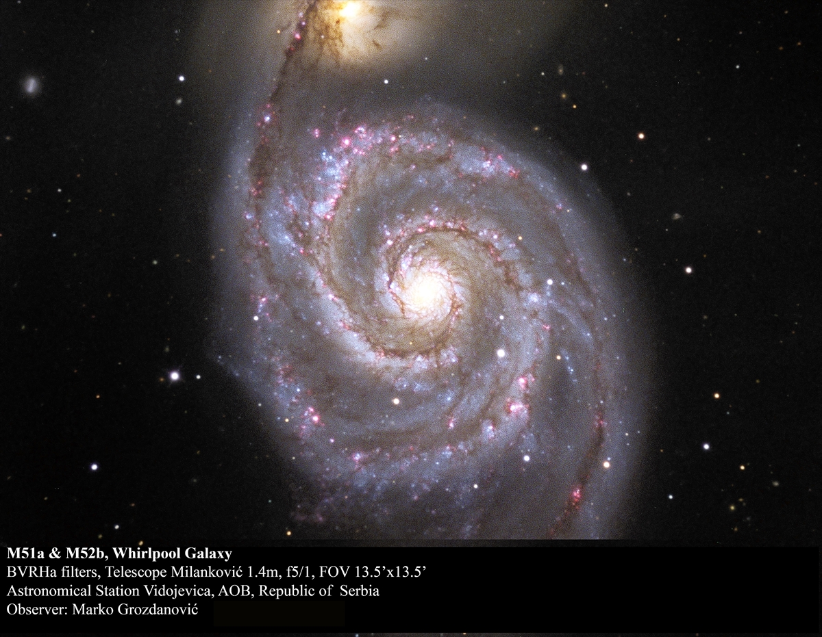 "Ono što teleskopima snimimo upotrebljava se da se naprave slike nebeskih objekata u živim veštačkim bojama. Zbog osjetljivosti prijemnika najbolje je da prijemnici budu monohromatski, odnosno da snimaju samo crno-bijelo. Onda možemo da snimimo slike u filterima na više talasnih dužina, pa da ih onda objedinimo u jednu sliku i veštački dodamo boje. To je način na koji možemo da vidimo raspored raznih materija unutar objekata, na primer, gasa, zvijezda i oblaka međuzvjezdane prašine", govori Vukotić.
