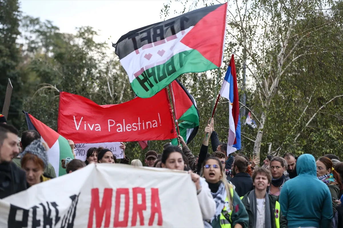 Protest podrške narodu Palestine održan je u nedjelju u Beogradu povodom navršavanja druge godišnjice izraelskog genocida u Pojasu Gaze.