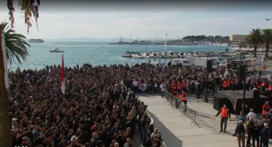 Između puštanja pjesama Tompsona, Miroslava Škore i Јure Stublića sa razglasa, okupljeni su skandirali "U boj, u boj za narod svoj", "Vukovar" i "Torcida, Torcida".