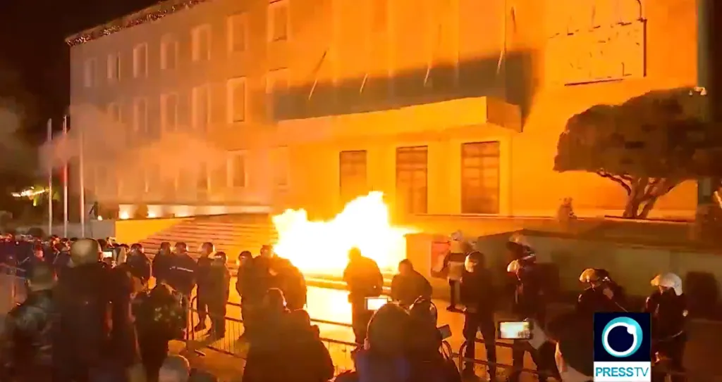 Protesti su eskalirali u nasilje, pri čemu su demonstranti bacali Molotovljeve koktele na policiju. Tri pripadnika sigurnosnih snaga su povrijeđena, a četiri osobe su privedene, dok se još sedam istražuje zbog učešća u nemirima. Povrijeđeni su i fotograf i jedan demonstrant.