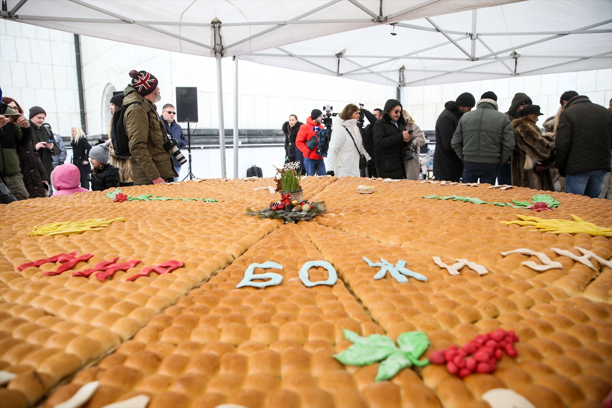 Tradicija Božića: Lomljenje česnice od 200 kilograma okupilo veliki broj građana Beograda