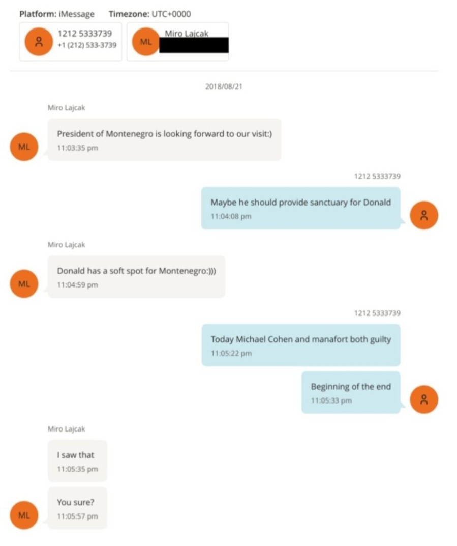 U jednoj od poruka spominju i Paula Manaforta, koji je američki politički konsultant, a također je bio angažovan u Crnoj Gori za vrijeme referenduma.
