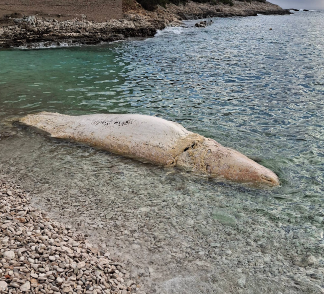Dok su šetali uvalom Vela Travna, na južnoj obali otoka Visa, grupa otočana naišla je na truplo od nepoznatog morskog sisavca.