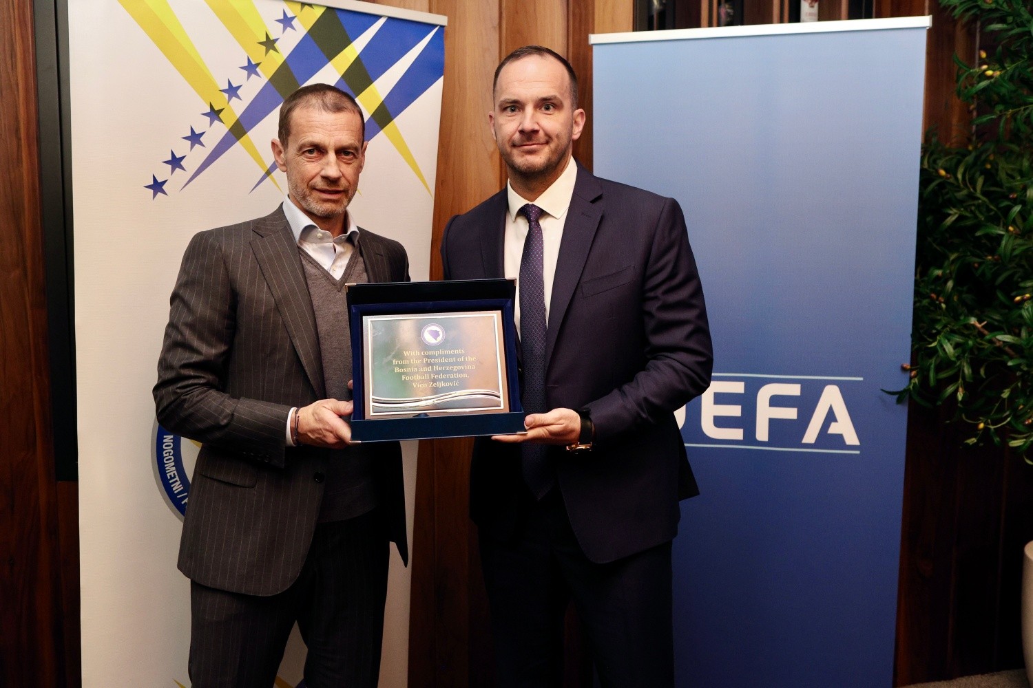 Predsjednik Nogometnog saveza Bosne i Hercegovine Vico Zeljković dočekao je danas prvog čovjeka Evropske nogometne federacije (UEFA) Aleksandera Čeferina.