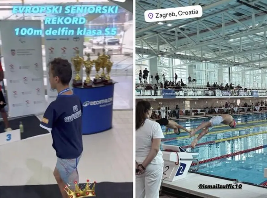 Oborio je evropski seniorski rekord u disciplini 100 metara delfin, klasa S5, na prestižnom međunarodnom takmičenju u Zagrebu, glavnom gradu Hrvatske.