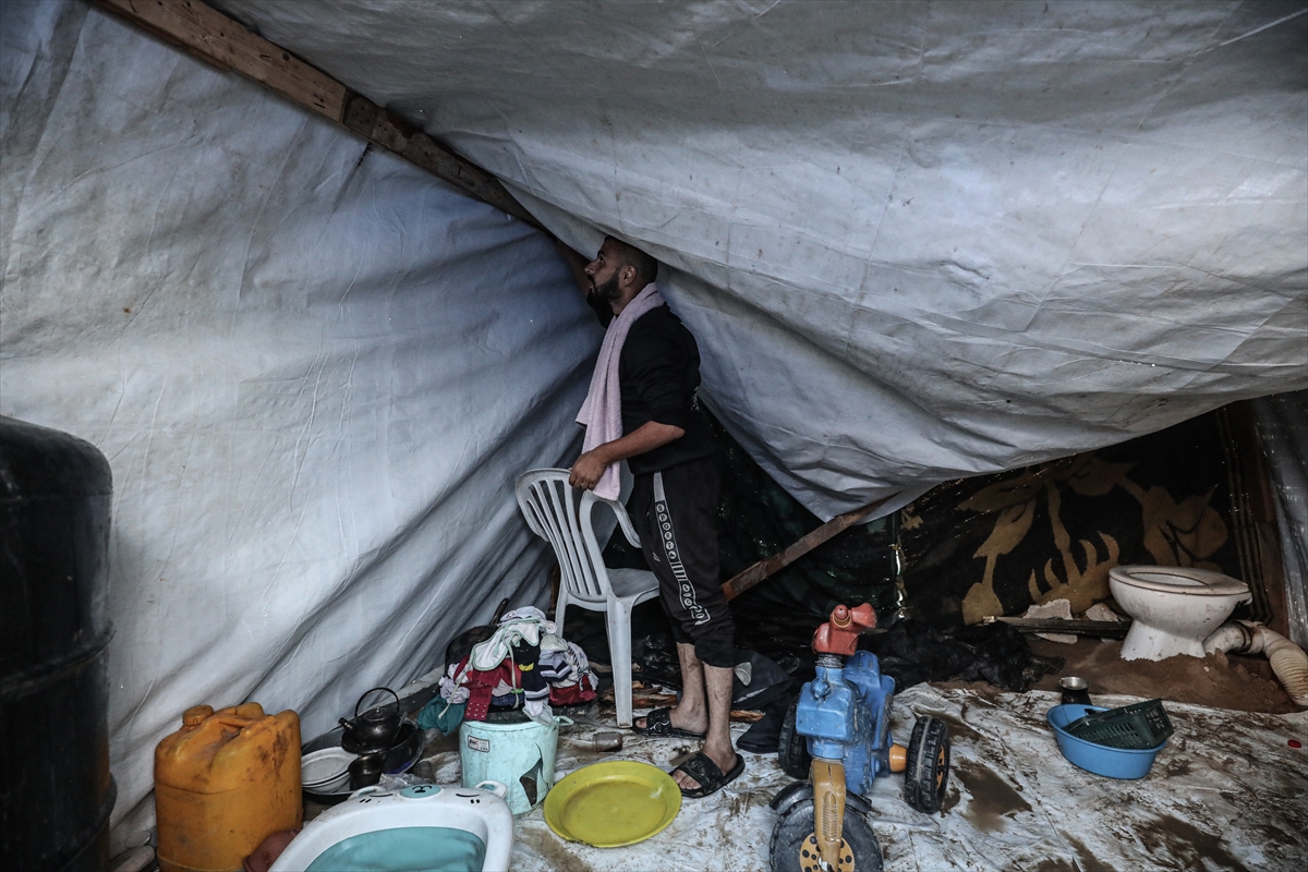 Šatori su poplavljeni nakon što je kiša neprestano padala od ranih jutarnjih sati do kraja noći, pogoršavajući uslove porodica koje su već raseljene zbog dvogodišnjeg genocida koji je Izrael provodio, prema izvještaju dopisnika Anadolua.