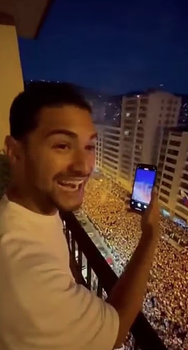 Još jedan video koji se široko dijeli na francuskom X kanalu prikazuje čovjeka na balkonu kako drži telefon prema gomili ljudi uz natpis: „Rijetko sam vidio narod sretan kao Venecuelanci što su se konačno riješili Madura zahvaljujući američkoj intervenciji.“ U pozadini se vidi vatromet.
