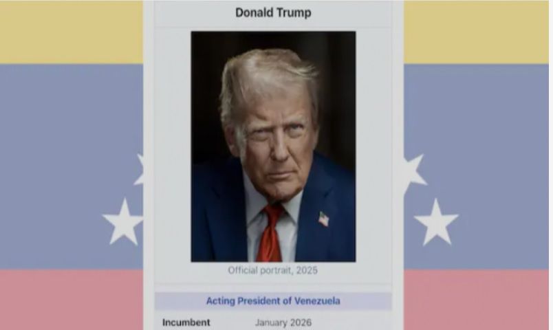 Na snimku, koji podsjeća na uređenu verziju stranice sa "Wikipedije", Trump se predstavlja kao aktuelni lider Venecuele, što je izazvalo buru reakcija i špekulacija širom globalnih medija.