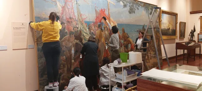 Aktuelno Svijet Dva aktivista uhapšena zbog vandaliziranja slike Kolumba u Pomorskom muzeju u Madridu