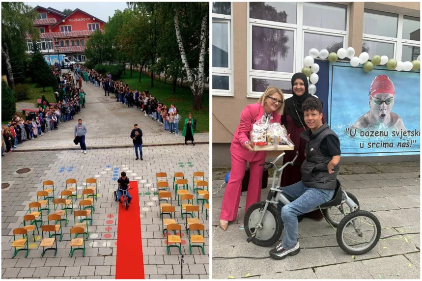 I ovaj put su mu prijatelji iz škole, učenici, nastavnici i ostali uposlenici škole izašli ispred škole i priredili mu trenutke za pamćenje.