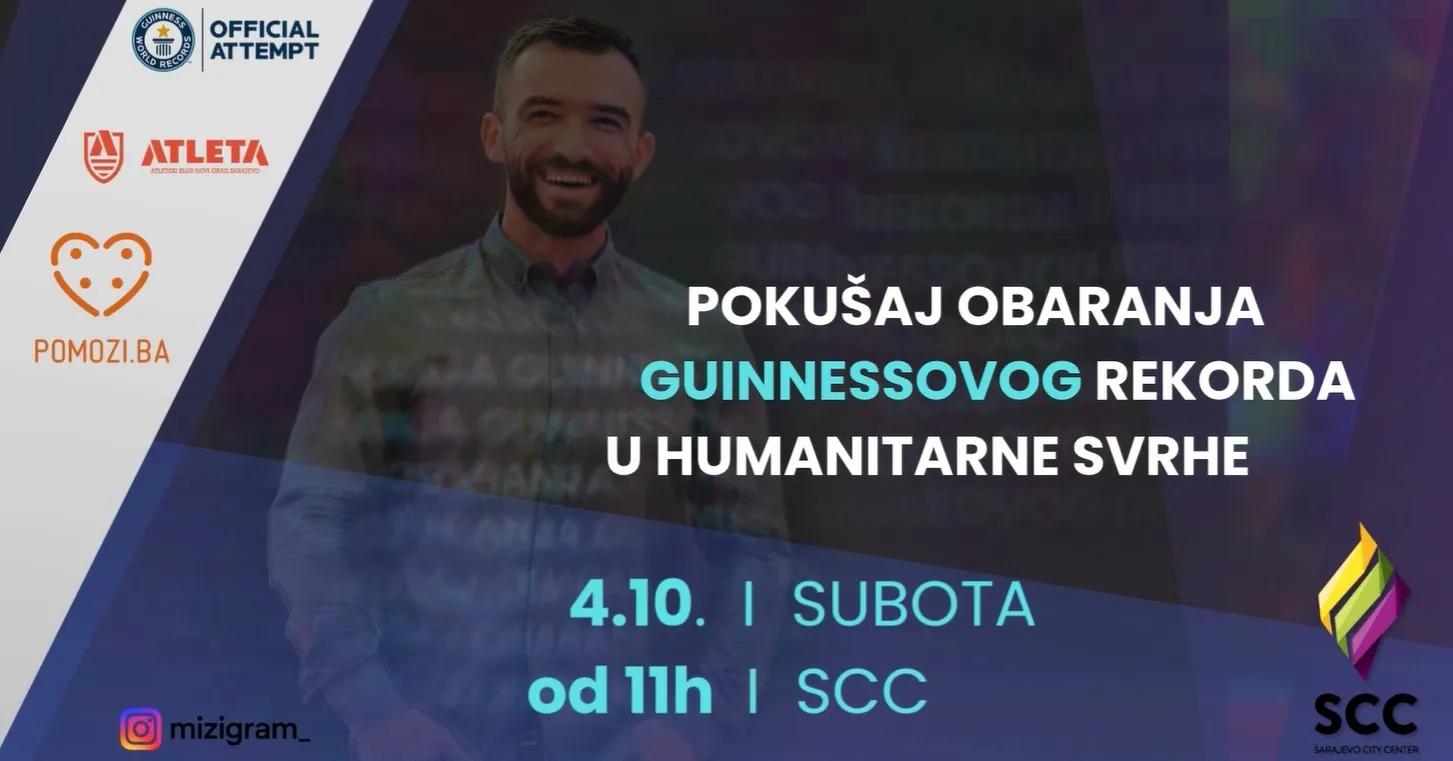U subotu, 4. oktobra, u Sarajevo City Centru bit će održan jedinstven sportsko-humanitarni događaj - pokušaj obaranja Guinnessovog rekorda u najviše "step-up" koraka u trajanju od osam sati.
