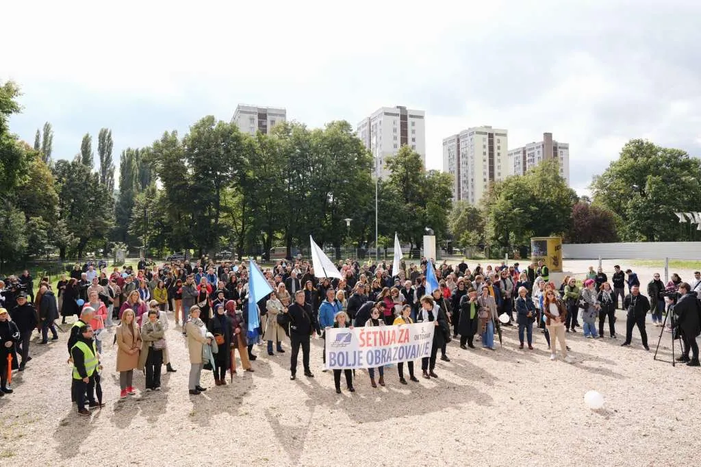 Sindikat srednjeg i visokog obrazovanja, odgoja i kulture Bosne i Hercegovine - SSVOONKBiH, Kantonalni odbor Kantona Sarajevo danas je, u povodu 5. oktobra - Međunarodnog dana učitelja, organizirao šetnju Vilsonovim šetalištem, od Treće gimnazije do platoa kod Zemaljskog muzeja, pod sloganom „Šetnja za bolje obrazovanje“.