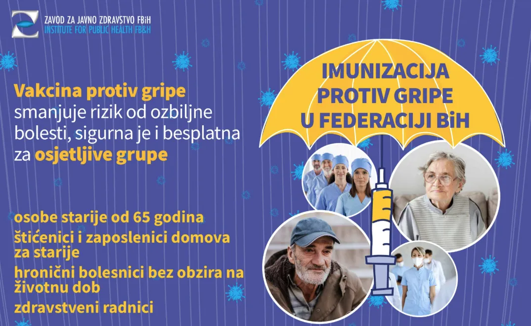 U Federaciji Bosne i Hercegovine već su registrirani laboratorijski potvrđeni slučajevi gripe. Sve dobne grupe mogu biti zahvaćene, ali ozbiljne bolesti, komplikacije i smrtni ishodi od gripe češći su među starijim od 65 godina i hroničnim bolesnicima bez obzira na životnu dob. Imunizacija je najbolji način zaštite od gripe.