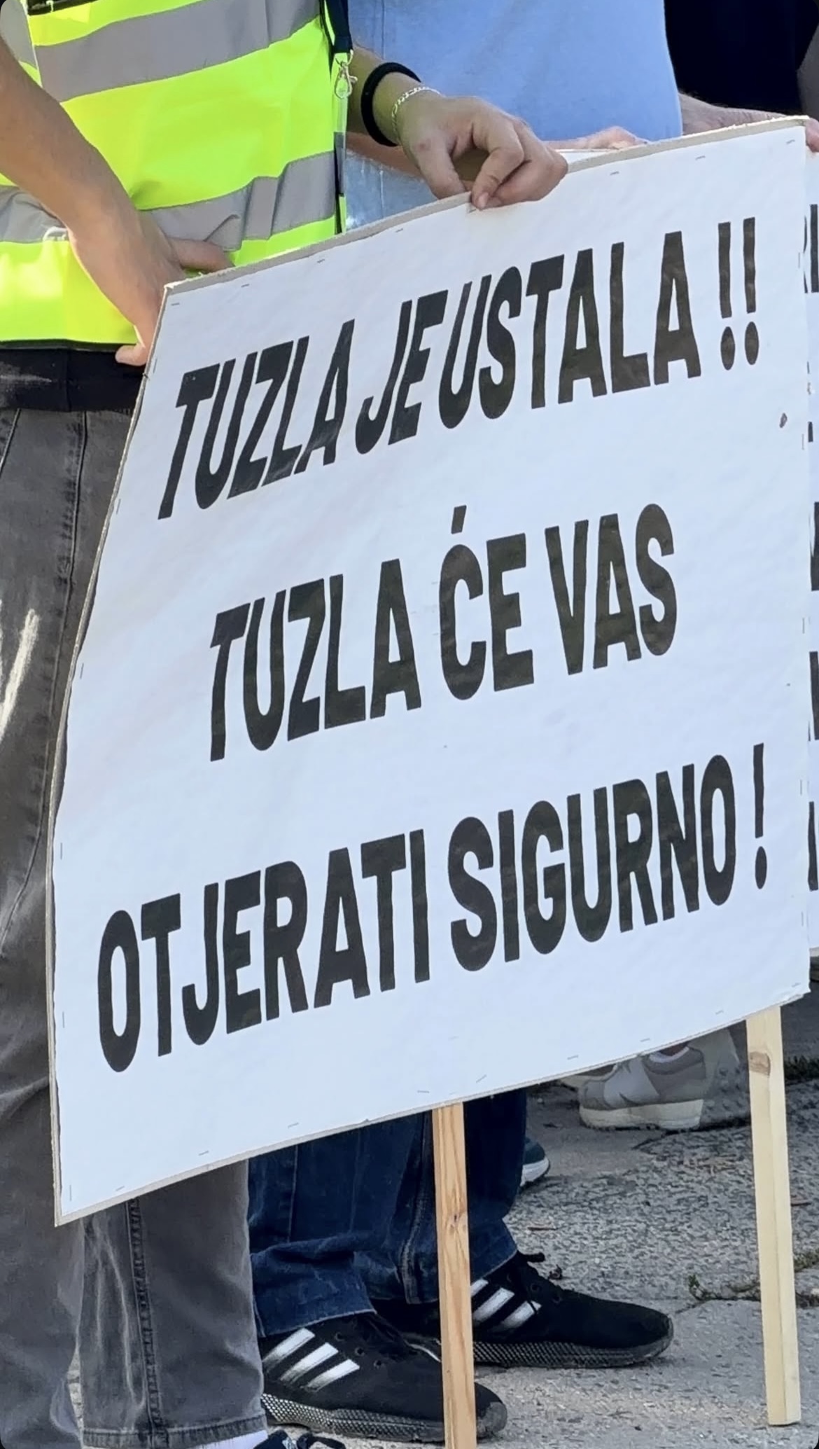 Okupljeni traže ostavke, i nose transparente kojima pozivaju na odgovornost. "Tuzlo, smijeni ljude koji nisu glas naroda", "Tuzla je ustala, Tuzla će vas otjerati sigurno", "Pravda za djecu", "Ko nam štiti djecu, ako sistem štiti zločince", "Zakon u uniformi, zločin u duši", "Moralna odgovornost", samo su neke od poruka na transparentima.