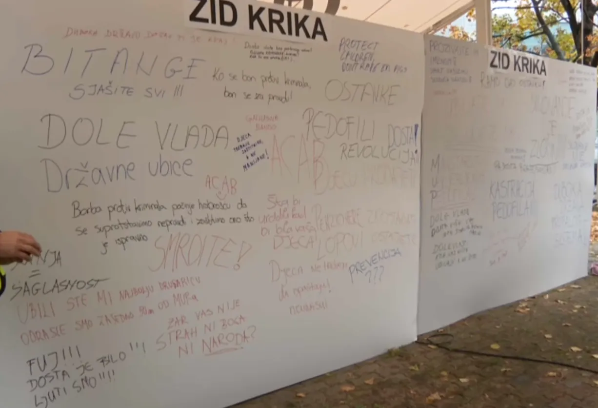 „Borba protiv kriminala počinje hrabrošću da se suprotstavimo nepravdi“, „Ubili ste mi najbolju drugaricu“, „Ko se bori protiv kriminala, bori se za pravdu“, „Državne ubice“, „Dole vlada“ — samo su neke od poruka ispisanih na „zidu krika“, prenosi Tuzlanski.ba.