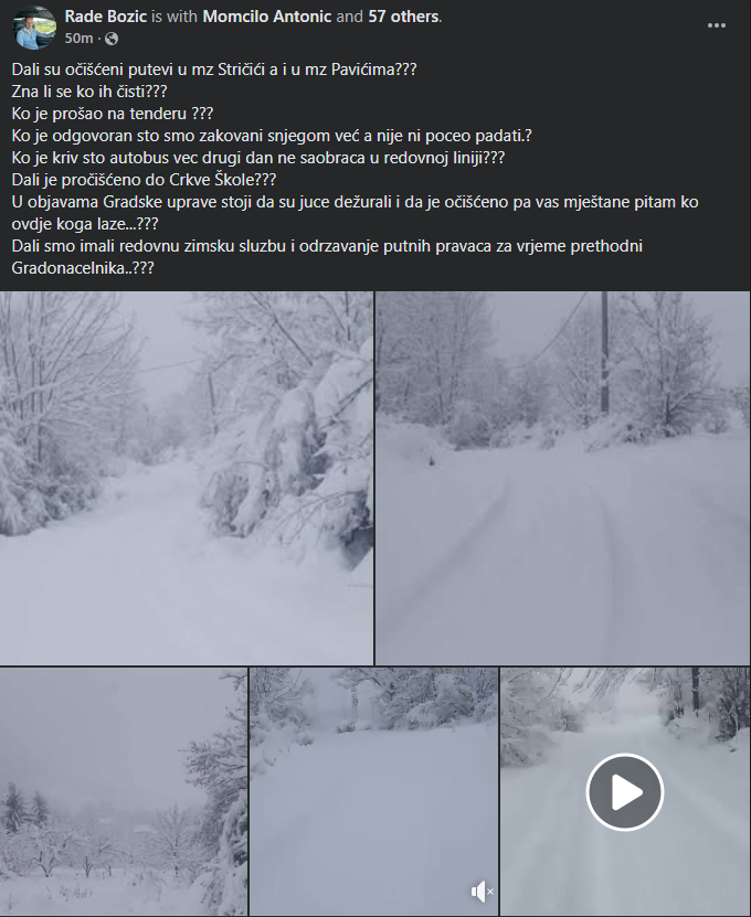 “Ko je odgovoran što smo već zakovani snjegom, a nije ni počeo padati? Ko je kriv što autobus već drugi dan ne saobraća u redovnoj liniji?”, istakao je Božić.