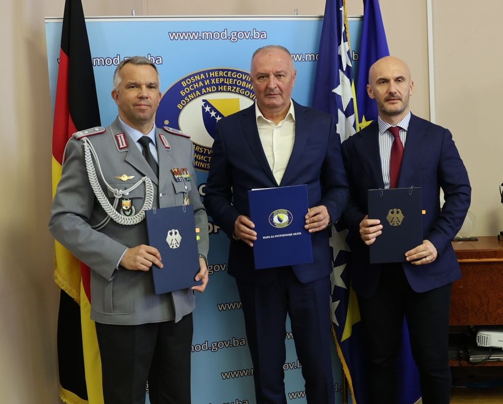 Ministar obrane BiH Zukan Helez potpisao je danas Tehnički sporazum između Ministarstva obrane BiH i Ministarstva odbrane Savezne Republike Njemačke donaciji pet vozila za prevoz opasnih materija. Tehnički sporazum je, u ime Ministarstva odbrane Njemačke, potpisao pukovnik Marc Abendroth, vojni ataše Savezne Republike Njemačke u BiH.