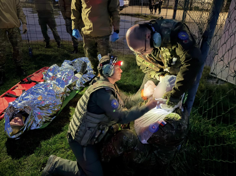 Scenario je uključivao pružanje prve pomoći dvama pacijentima i njihovu evakuaciju u uslovima niskih temperatura, smanjene vidljivosti i jakog vjetra.