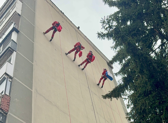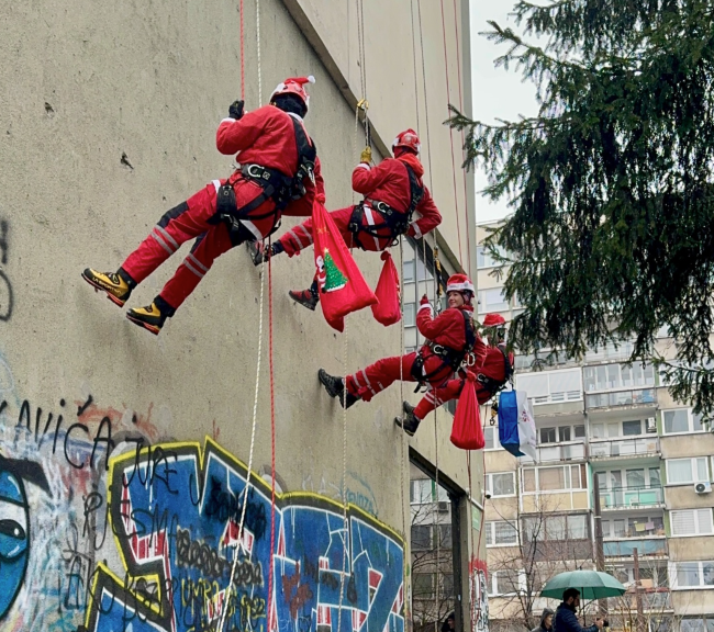 U ulozi Djeda Mrazova, pripadnici GSS-a spustili su se niz zgradu i na kreativan način stigli do vrtića Bombon 1, gdje su ih djeca dočekala s oduševljenjem, osmijesima i gromoglasnim aplauzom.