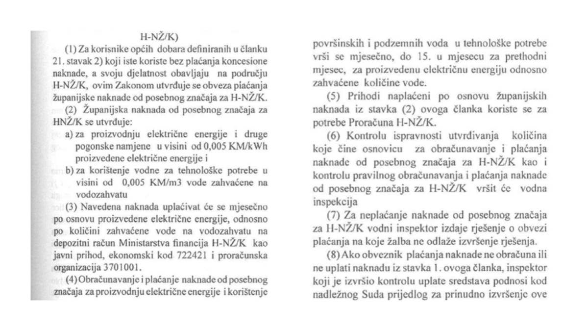 I pored upozoravanja da Zakonom o vodama, HNK direktno preuzima ingerencije Federacije BiH što je i potvrđeno aktulenom presudom Ustavnog suda FBiH, Elektroprivreda BiH je, kako se navodi u saopštenju, kao odgovorna kompanija uredno izvršavala obaveze propisane spornom odredbom Zakona i po osnovu naknade u budžet kantona od 2013. godine do danas uplatila oko 79 miliona KM.