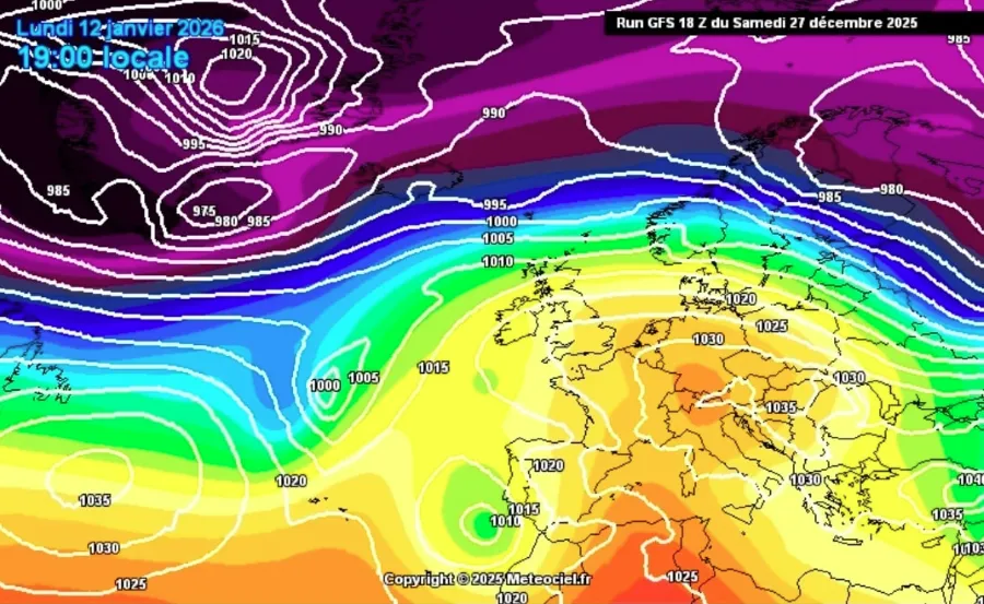 Istovremeno, na Islandu se atmosferski pritisak spustio na oko 950 hPa, što dodatno održava snažnu atlantsku cirkulaciju, koja je, nažalost, onemogućila dolazak zimskih uvjeta na naše prostore.