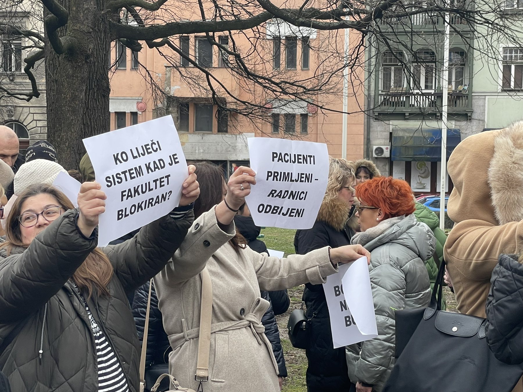 Protest radnika Stomatološkog fakulteta Sarajevo: Januarska plata - gdje je zapelo?
