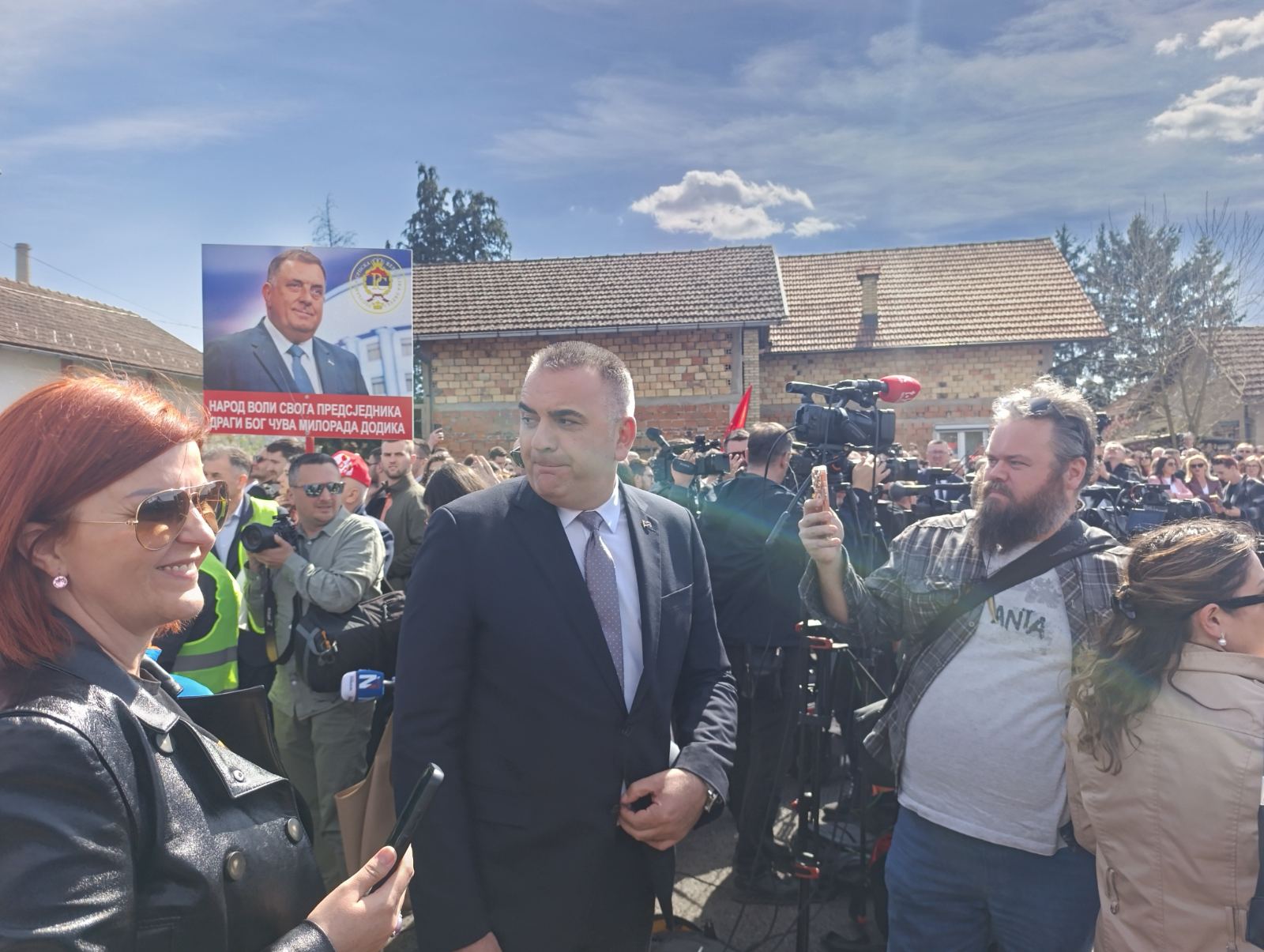 Predsjednik SNSD-a Milorad Dodik najavljen je kao osoba koja je najzaslužnija za izgradnju mosta u Česmi. Publika je uzvikivala "Mile, Mile".