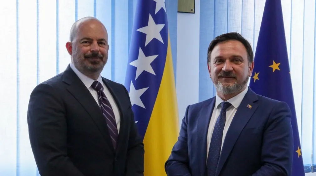 Zaštita potrošača u BiH od volatilnosti cijena goriva na globalnom tržištu bila je u fokusu današnjeg sastanka otpravnika poslova američke ambasade u BiH Johna Ginkela i ministra trgovine FBiH Amira Hasičevića, objavila je Ambasada SAD-a na X-u.