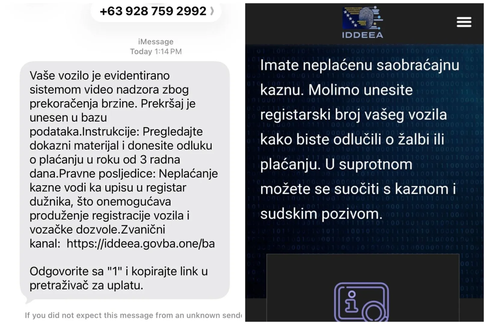 Građanima se šalju poruke u kojima se lažno navodi postojanje saobraćajnih kazni, hitnih rokova za plaćanje, pravnih posljedica i navodnih registara dužnika, uz dostavljanje sumnjivih internet linkova koji nemaju nikakve veze sa zvaničnim sistemima institucija Bosne i Hercegovine.