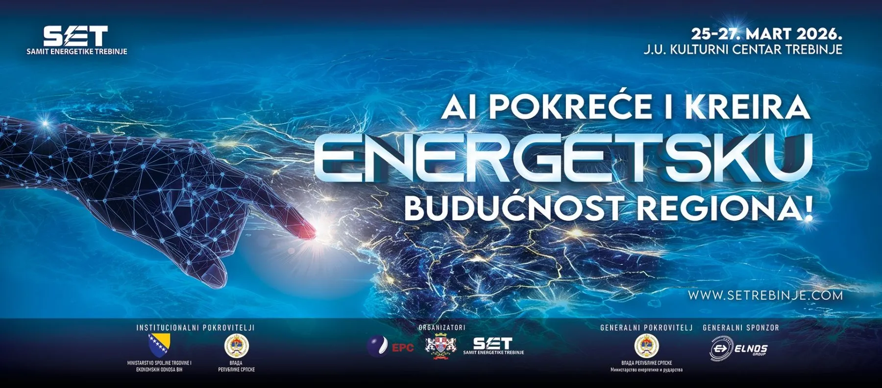 Samit energetike "SET – Trebinje 2026" biće održan od 25. do 27. marta u Kulturnom centru u Trebinju, pod sloganom "Al pokreće i kreira energetsku budućnost regiona".