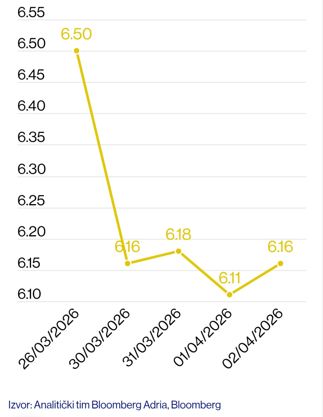 Rukovodilac Analitičkog tima Bloomberg Adrije Mihael Blažeković ističe da je od "pricinga" do juče (2. aprila) prinos na obveznicu Republike Srpske pao za 35 baznih bodova.