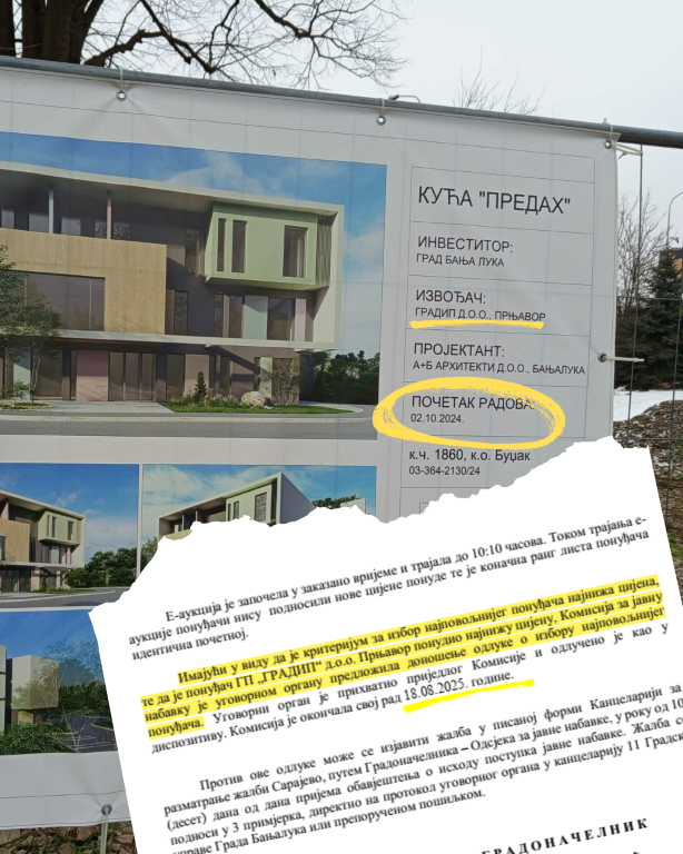 "Okružno javno tužilaštvo Banjaluka je dana 29.09.2025. godine, zaprimilo prijavu Transparency International BiH, vezano za javnu nabavku Grada Banjaluka za izvođenje radova na izgradnji kuće 'Predah' u Banjaluci, a koje radove je po odluci i tenderskoj dokumentaciji dobilo GP 'Gradip' d.o.o. Prnjavor. Na osnovu podnesene prijave formiran je predmet i dodijeljen u rad postupajućem tužiocu. Nakon upoznavanja sa navodima prijave postupajući tužilac uputio je zahtjev PU Banjaluka za prikupljanjem potrebnih obavještenja", poručili su iz OJT Banjaluka za Euronews.