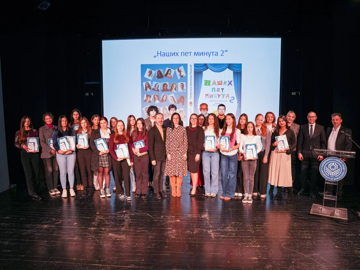 U organizaciji Centra za nadarenost NAUM Filozofskog fakulteta Univerziteta u Banjoj Luci, danas je u Studentskom kulturnom centru održana svečana promocija knjige „Naših pet minuta 2 – dramoleti za školsku scenu“.