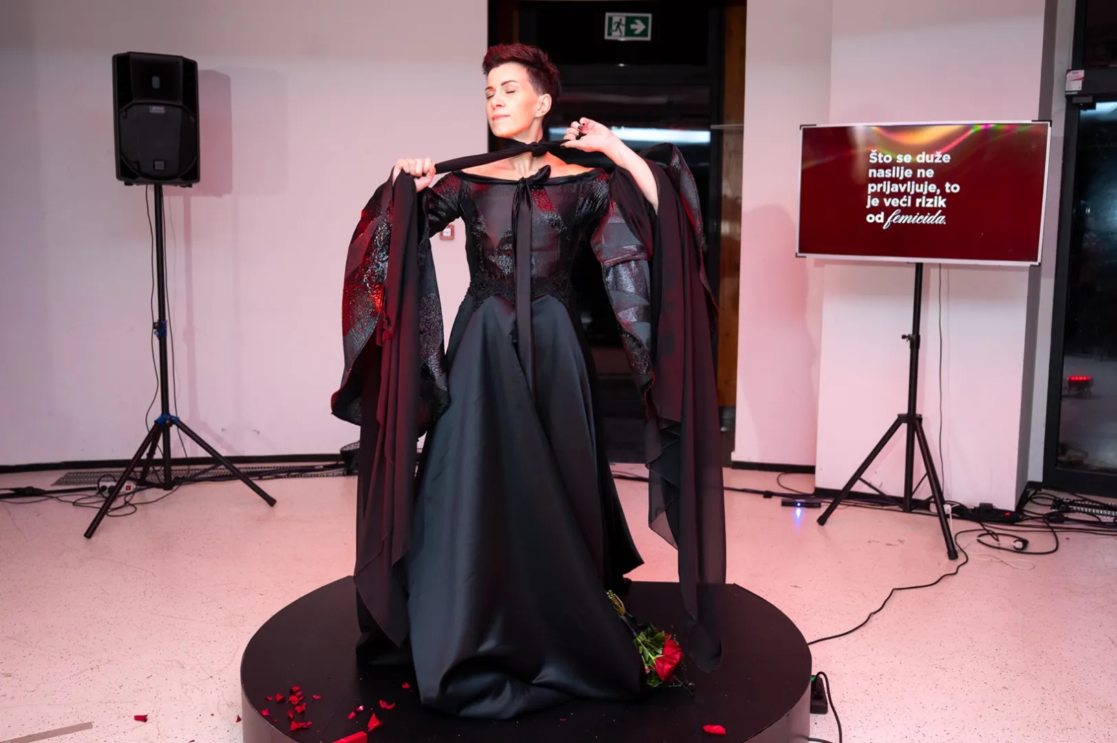 Performans je izvela aktivistica Maja Gasal, a kampanju je podržao renomirani modni kreator Adnan Hajrulahović Haad, čija je jedinstvena crna vjenčanica, kao centralni element performansa, postala snažan simbol borbe protiv femicida.