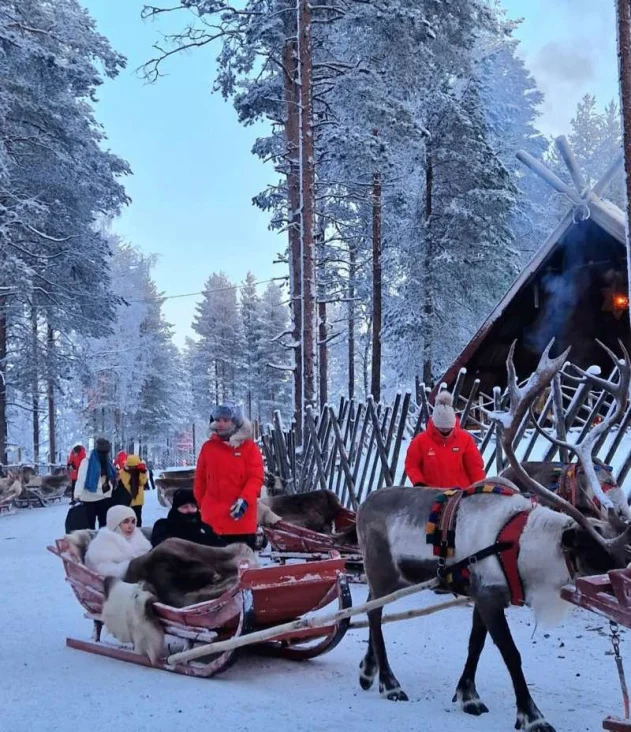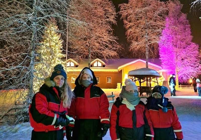"U Rovaniemi smo stigli nakon osam sati vožnje, nedugo nakon zalaska sunca. Bilo je -27C sa učestalim vjetrom (osjeća se -34C). Sa željezničke stanice smo taksijem došli do hotela koji se nalazio na kraju šetališta u centru grada. Planirali smo ostati tri noći. Vrlo je bitno, pogotovo ako putujete sa djecom, da budete konkretni i brzi na svakom koraku, i da sve odluke i razmišljanja donosite u toplini sobe. Slijedi prijava, kratka aklimatizacija, a nakon toga odlazimo u Santa Klaus Village, selo smješteno tačno na arktičkom krugu. Ono je službena kuća Djeda mraza, pošta iz koje se šalju pisma sa posebnim arktičkim pečatom. Prvi dan dolaska u Santa Klaus djeca su uživala u vožnji irvasima, a zatim smo obišli sve druge dijelove sela i slavili Nadijin 13. rođendan u malom restoranu u okviru sela", priča Adis.