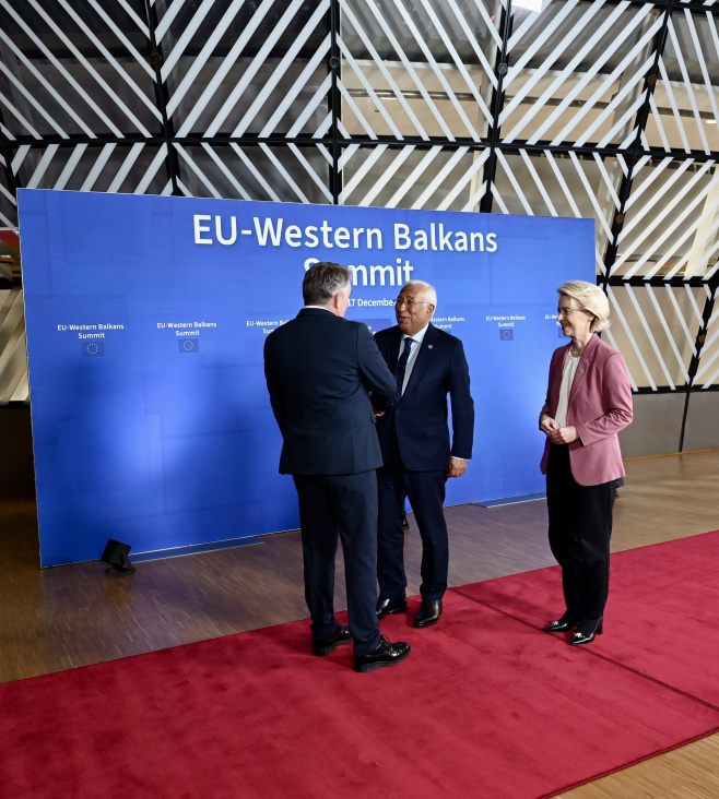 Komšića su u zgradi Evropskog vijeća dočekali predsjednik Evropskog vijeća Antonio Costa i predsjednica Evropske komisije Ursula von der Leyen, s kojima je kratko razgovarao prije početka samita.