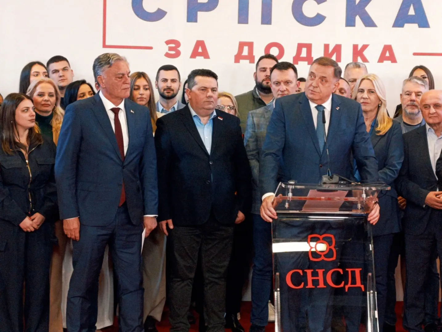 Na pres konferenciji u SNSD lider stranke Milorad Dodik proglasio je pobjedu Siniše Karana na ponovljenim prijevremenim izborima za predsjednika RS.