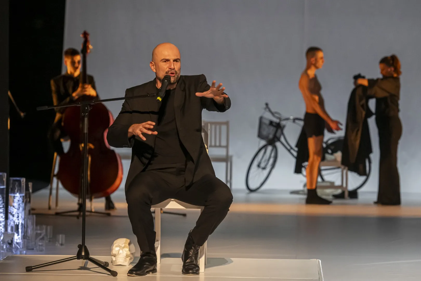 U predstavi igraju: Ermin Sijamija, Slaven Vidak, Vedrana Božinović, Sanela Krsmanović-Bistrivoda, Dino Bajrović i muzičar Rastko Zečević.