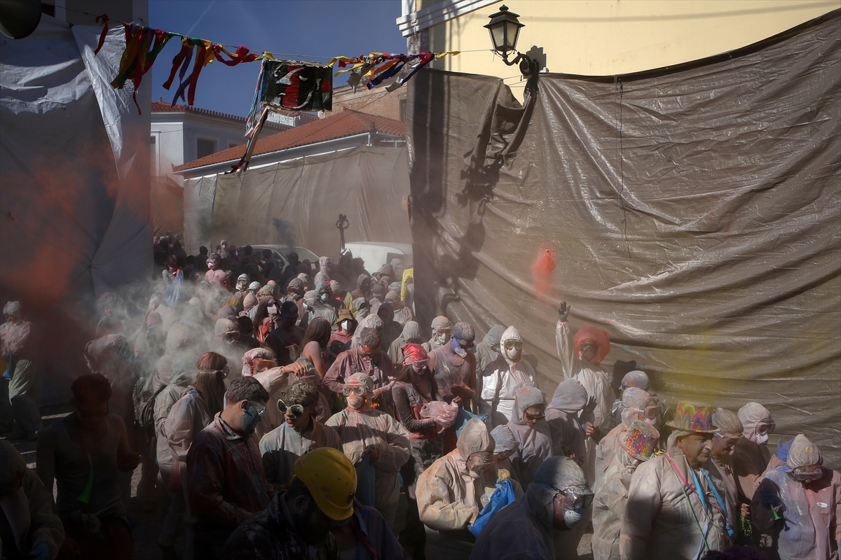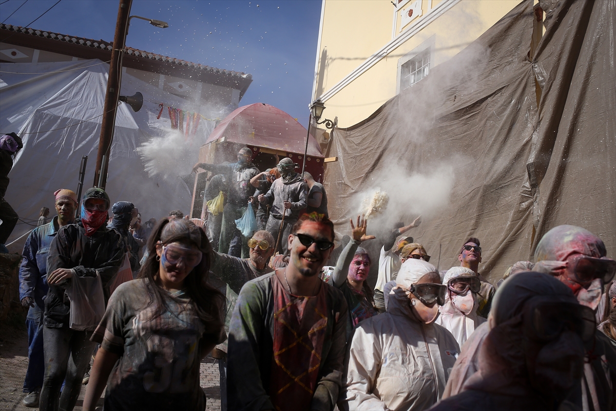 Festival bacanja brašna je godišnja tradicija u ovom malom lučkom gradiću u centralnoj Grčkoj.