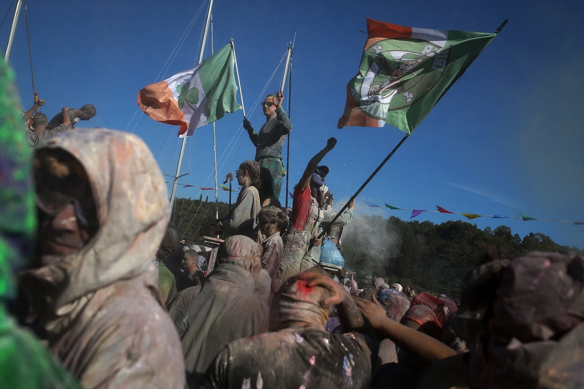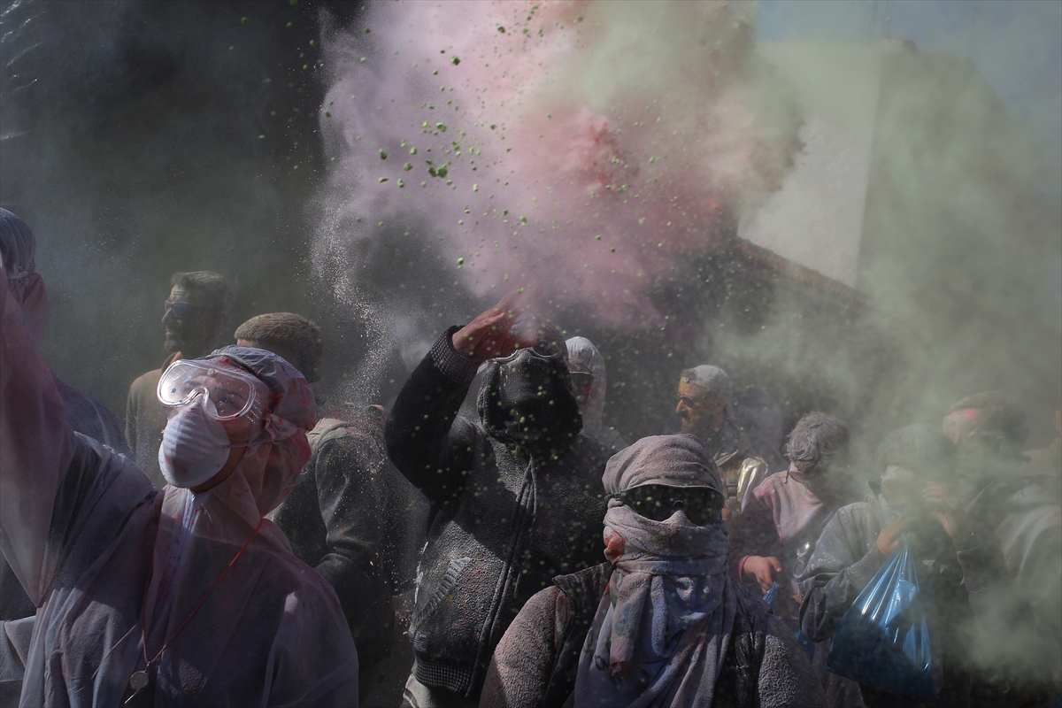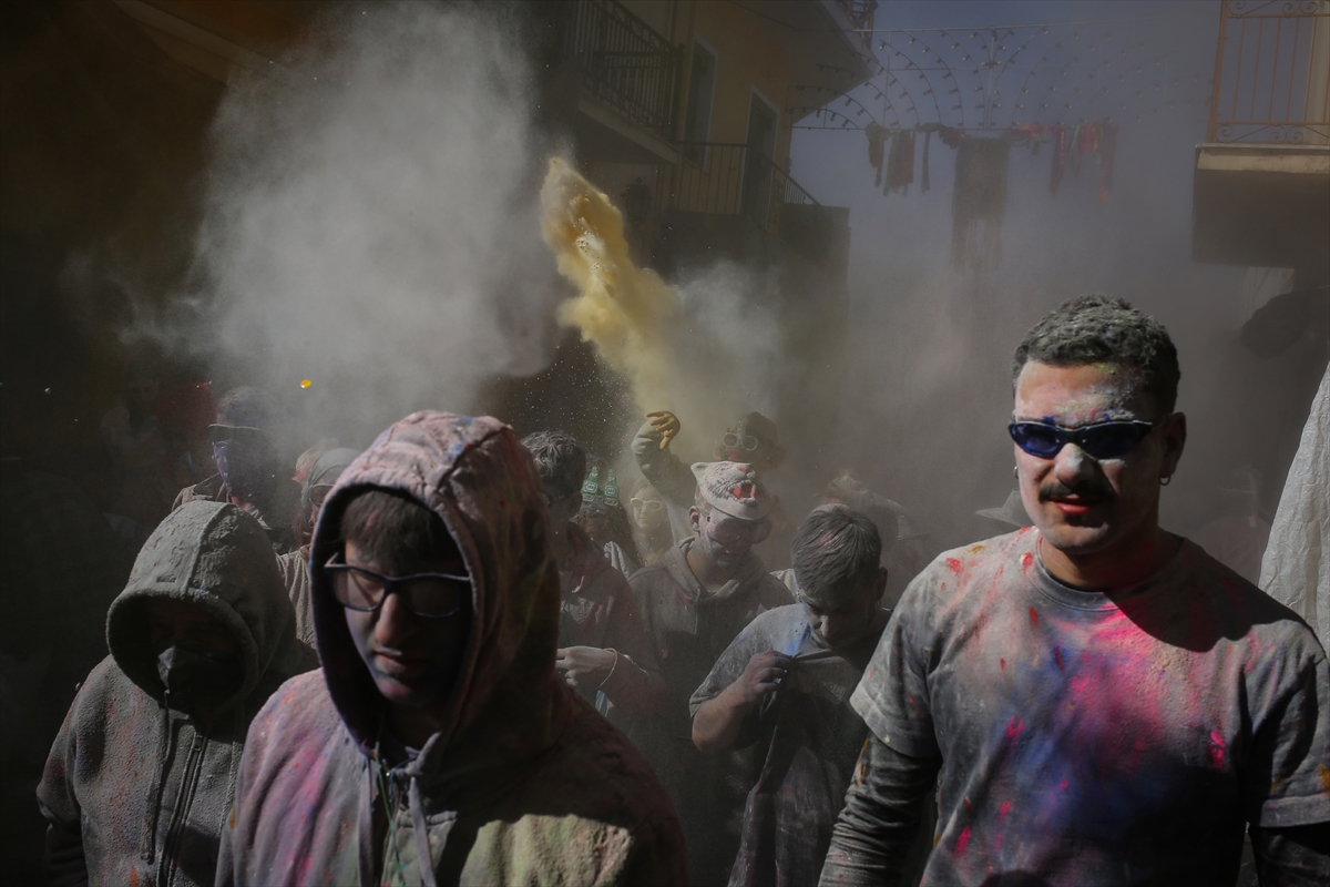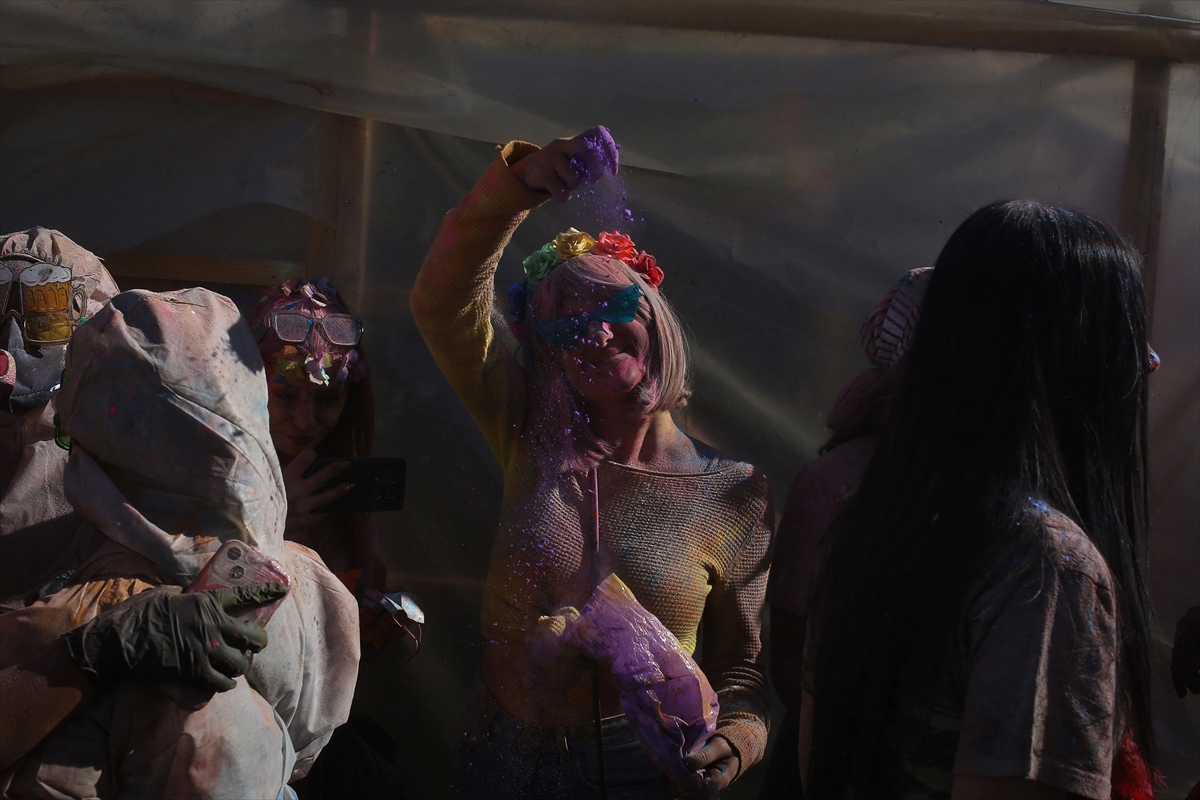 Učesnici su u svečarskom raspoloženju jedni na druge bacali obojeno brašno, stvarajući veselu i živahnu atmosferu ispunjenu muzikom i plesom.