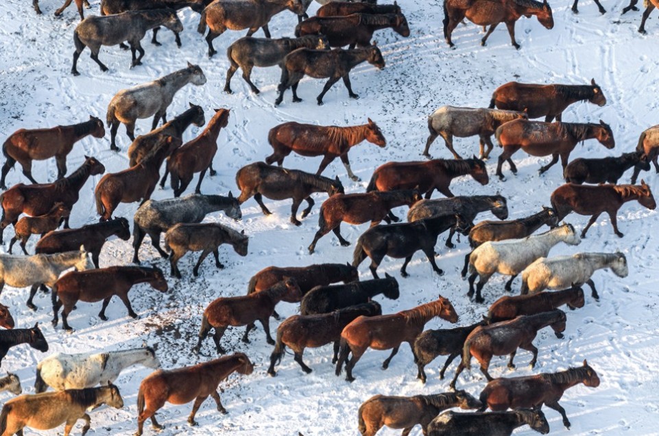 Ljepota galopa krda konja na snijegom prekrivenoj planini oduzima dah posjetiocima, a za fotografe se organiziraju i posebne posjete.